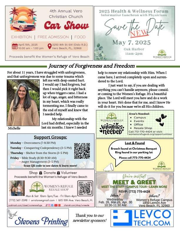 If you are currently receiving our monthly print newsletter and would like to be removed from our mailing list, please email: judy.graziosi@womensrefugevb.org